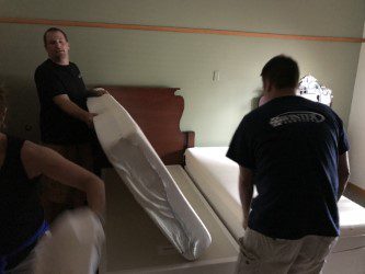 These high-quality mattresses will help families get much needed rest after a long, tiring day at the hospital. This will help them re-charge so they have the energy they need to take on the next day. A team from Winter Services, who have donated plowing services to the House the past two winters, are helping with this project by donating their time to move old mattresses out, new mattresses in and help make up the beds in the rooms with fresh linens.