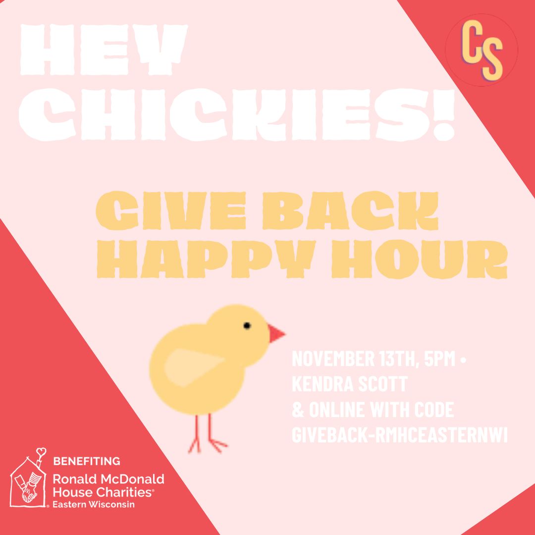 Grab your girlfriends and join Chick Social in hosting a GiveBack Happy Hour at Kendra Scott at the Corners! With the Holidays just around the corner, you can get a jump on your shopping. Join us November 13th from 5:00 p.m. to 7:00 p.m. for sips, sweets, and jewels at Kendra Scott at the Corners of Brookfield. With all purchases, 20% will be donated to RMHC Eastern Wisconsin. Can’t join us in-store, shop online at KendraScott.com! By using code GIVEBACK-RMHCEASTERNWI, 20% of your purchase will be donated to the charity too!